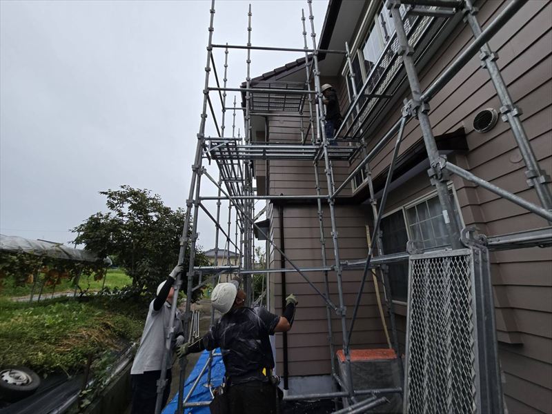ついに!塗装作業がすべて完了し、足場の解体作業に入らせていただきました👷♂️🔧